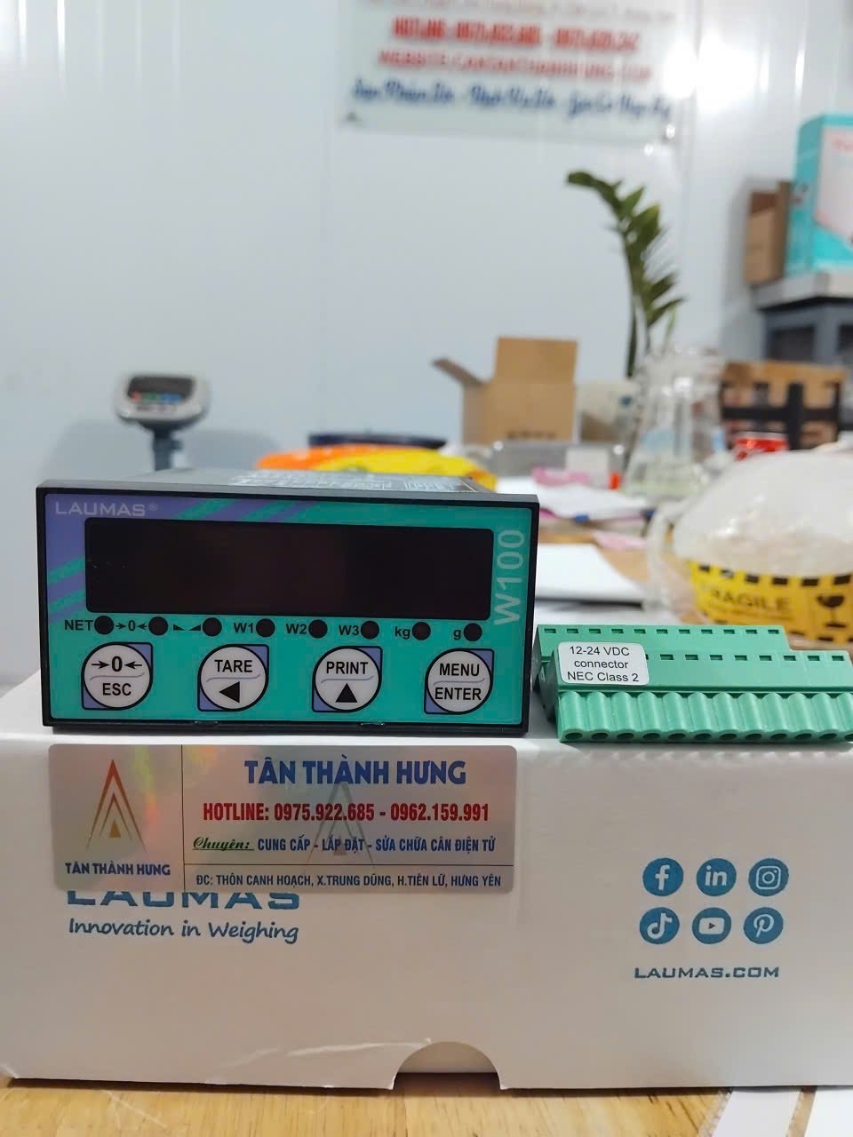 Đầu cân W100 (thường là model Laumas W100 – Italia) là một bộ chỉ thị cân điện tử (indicator) dùng trong hệ thống cân công nghiệp để nhận tín hiệu từ loadcell (cảm biến lực) và hiển thị/truyền dữ liệu trọng lượng.